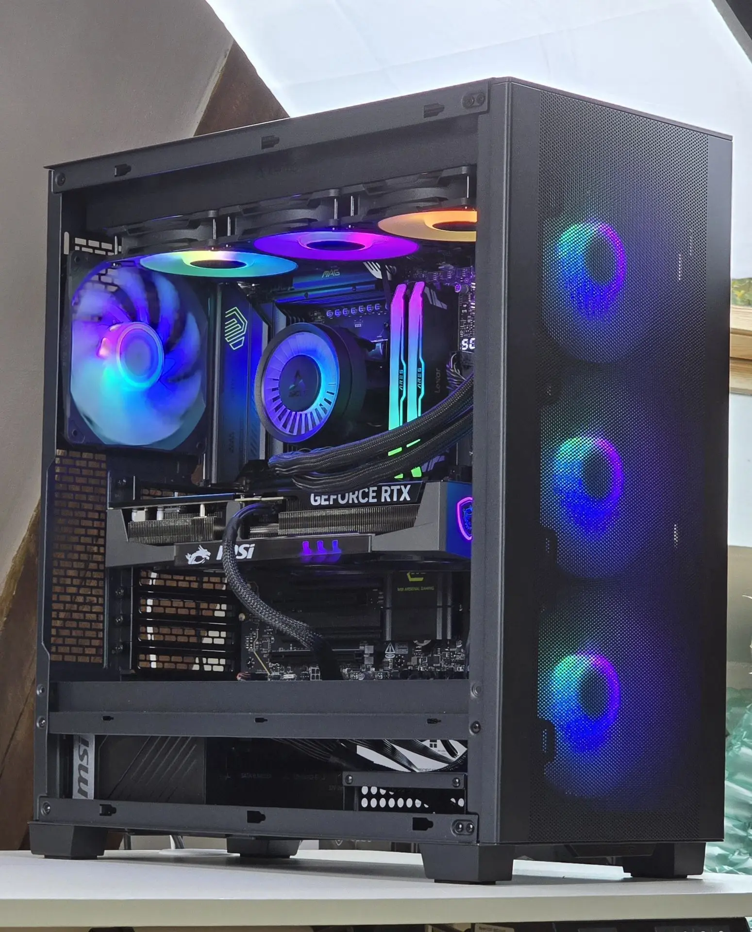 Une fois les pièces reçues à mon atelier, j'assemble le PC avec soin, je le prépare de A à Z (windows, pilotes, mise à jour du Bios, Optimisation, XMP / EXPO...) et je fais toutes les vérifications nécessaires pour être certain qu'il soit 100% fonctionnel avant de vous l'envoyer.