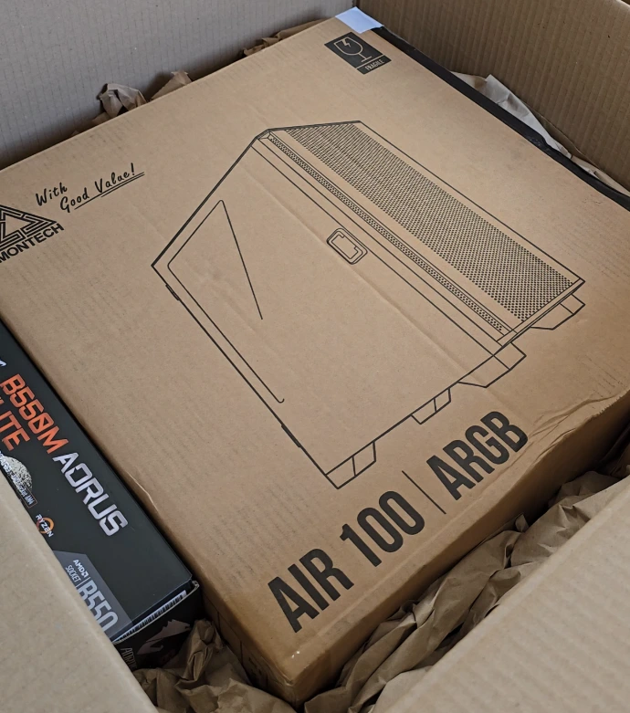 Ouvre le grand carton externe. Tu trouveras un second carton contenant le PC ainsi que la boite de ta carte mère.