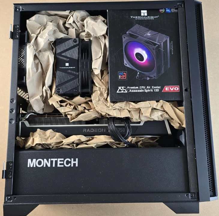 Ouvre le boitier et retire la plaque latérale. Enlève les protections et inspecte l'intérieur du boitier. Assure-toi de tout retirer et fais-le délicatement pour ne pas arracher un composant au passage ou tirer un câble. Profites-en d'ailleurs pour vérifier que rien n'a bougé sur le chemin : Chaque composant doit être bien enfoncé dans son connecteur dédié et chaque câble bien branché.