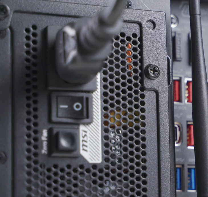 4. Branchement de l'alimentation : Le câble secteur se touve dans la boîte de ta carte mère ou peut aussi être scotché sur le côté de ton boitier.